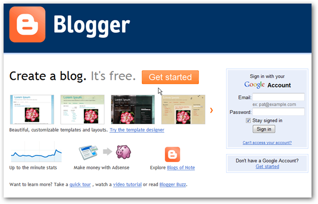 Setting up blogger is easy. You go to http://blogger.com , sign in with a Google account (create one if you don’t have one), and set up your blog.