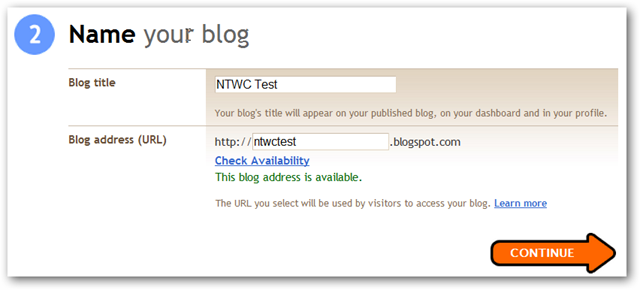 It really is that easy! And here is the brand new empty blog at http://ntwctest.blogspot.com/ .