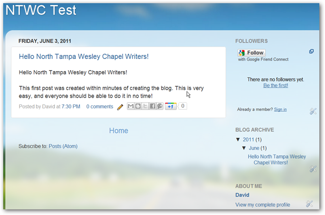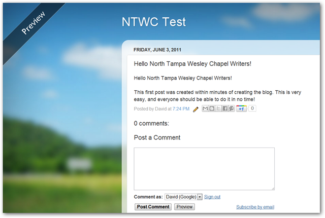 I think it all looks good, so let’s publish it. Here is the published post at http://ntwctest.blogspot.com/. Feel free to browse over and leave a comment.
