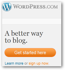 So you have seen how easy Blogger is, now it is time for WordPress . You start by navigating your browser to http://wordpress.com/ . On the left side of the page, you will see the Get started here button. Click and lets begin.