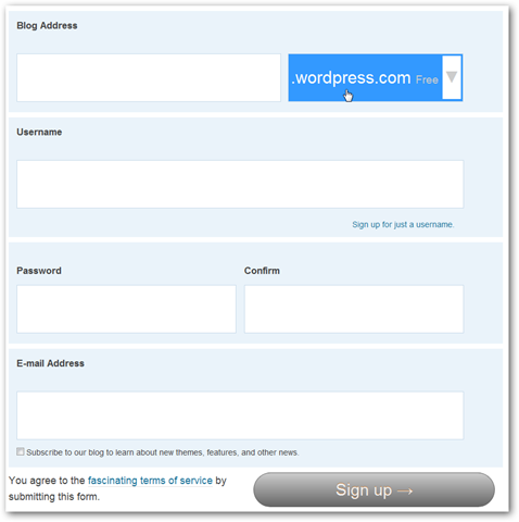 Fill out the form and click sign-up. In a few minutes you will receive an email confirming your email address. Click the link inside the email, and you will be taken to your blogs dashboard where you can create posts.