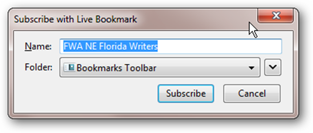 Once you click Subscribe Now, Firefox like Internet Explorer, asks where you want to put the subscription. For now, stick to the defaults and click subscribe.