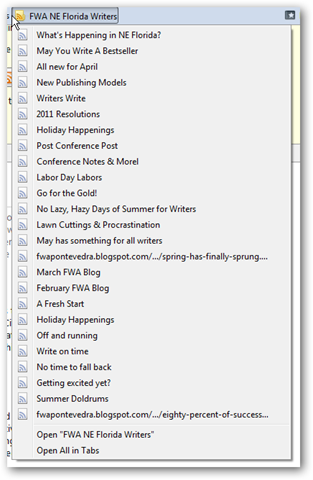 Finally, you will have an entry on your bookmark bar titled FWA NE Florida Writers. Now you can see all the posts, or just click on one to read it.
