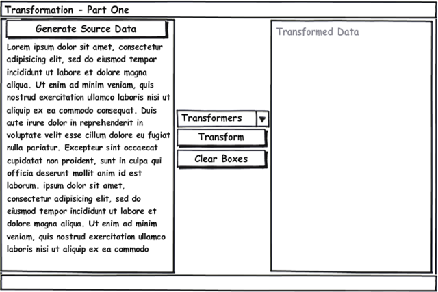 }Line 4 creates our TransformationEngine, and initializes with the LoremIpsumGenerator, the LowerCaseTransformer, and the UpperCaseTransformer.