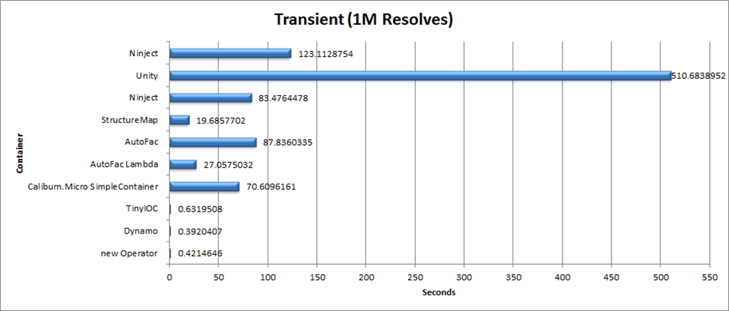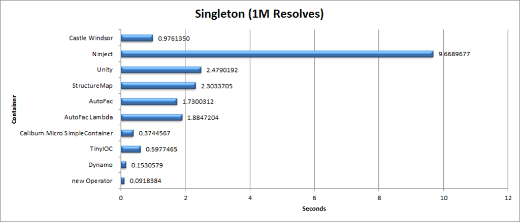 My thanks go to Martin From for doing this test and the Dynamo IoC Container.