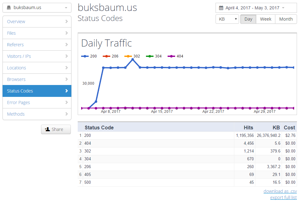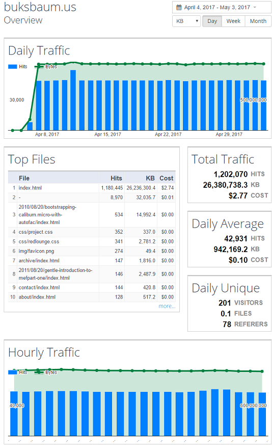Now - it is true that beggers can't be choosers, but the one feature I wish I had in S3Stat is filtering. I would love to filter out systemic calls like the AWS CDN, robots.txt, and any bots. However, for the price they are allowing this deadbeat to use their product, I will not complain too loudly.
